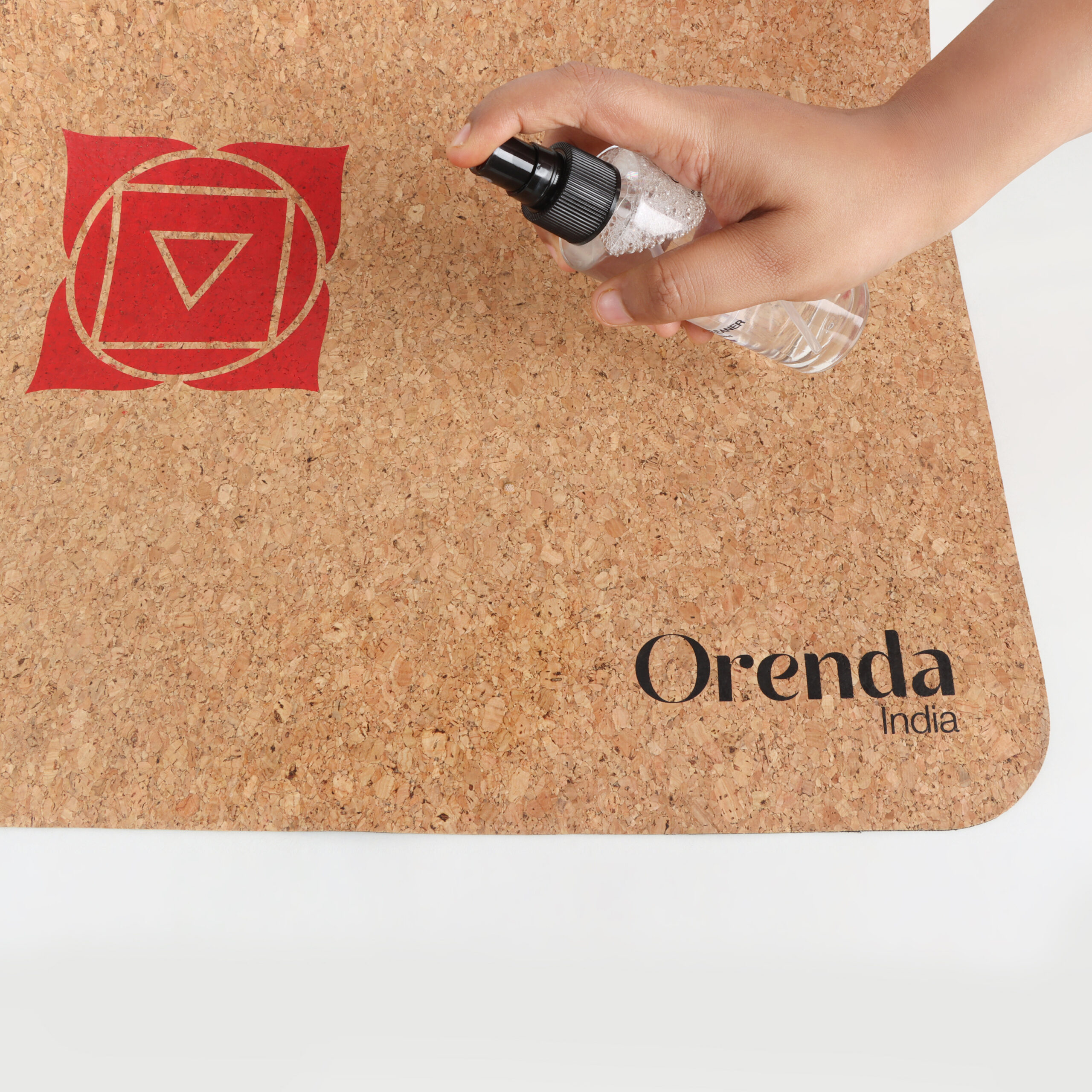 . Spray Evenly: Hold the bottle 6–8 inches away and spray a light mist over the surface of your mat or cork product.